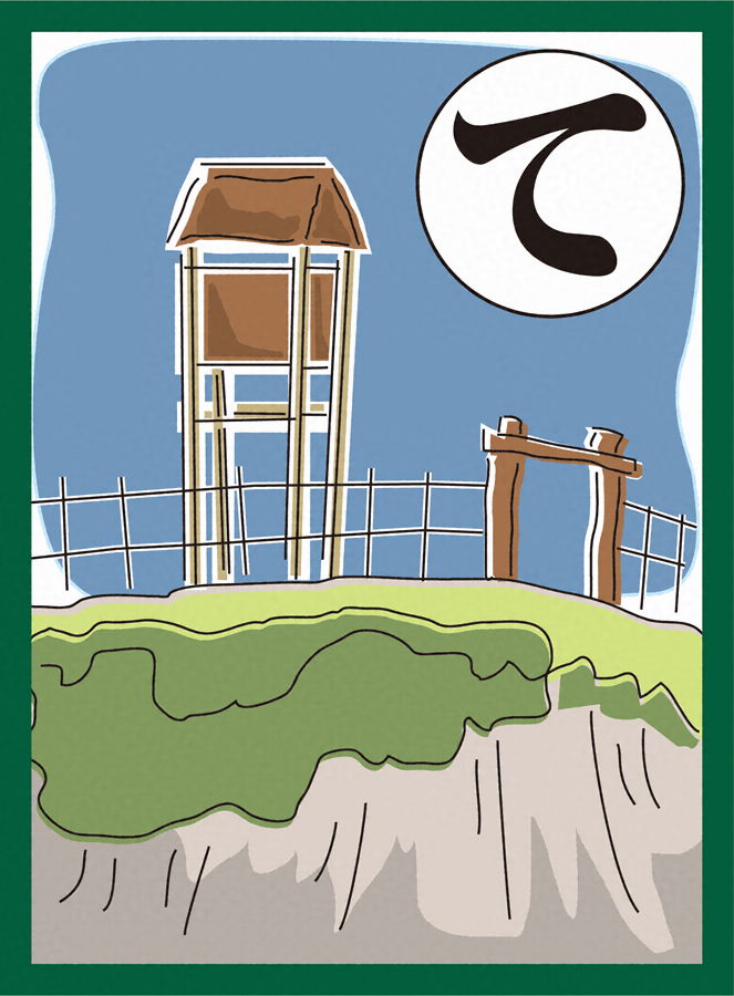 『まつばらいろはかるた』絵札「敵をうつ かねつき山は とりであと」