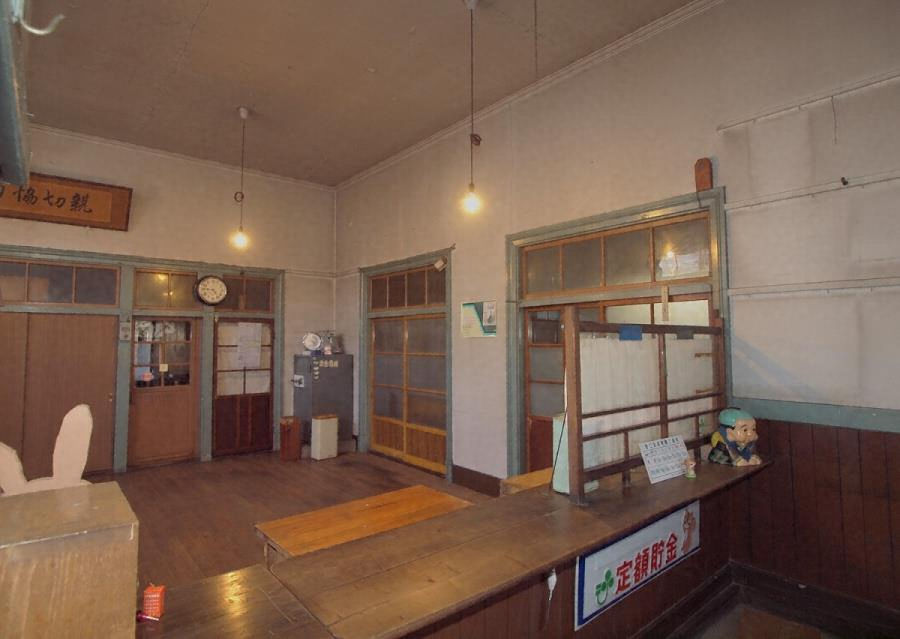 伊那街道沿いの小野宿に西面する郵便局。平屋建寄棟造妻入鉄板葺で、外壁は下見板張とする。内部は西半を窓口事務室とし、東半は中廊下の北に2室、南に2室を並べ、南西に床付座敷を配す。営業時のカウンターなど残り、宿場の近代化を伝える貴重な郵便局。