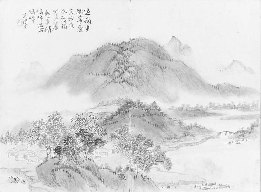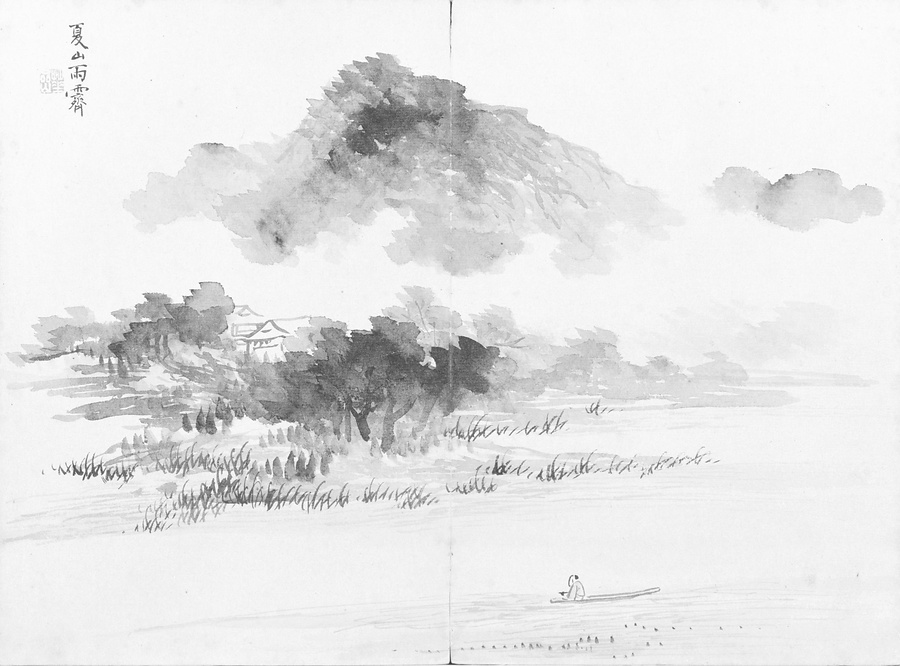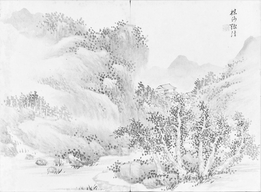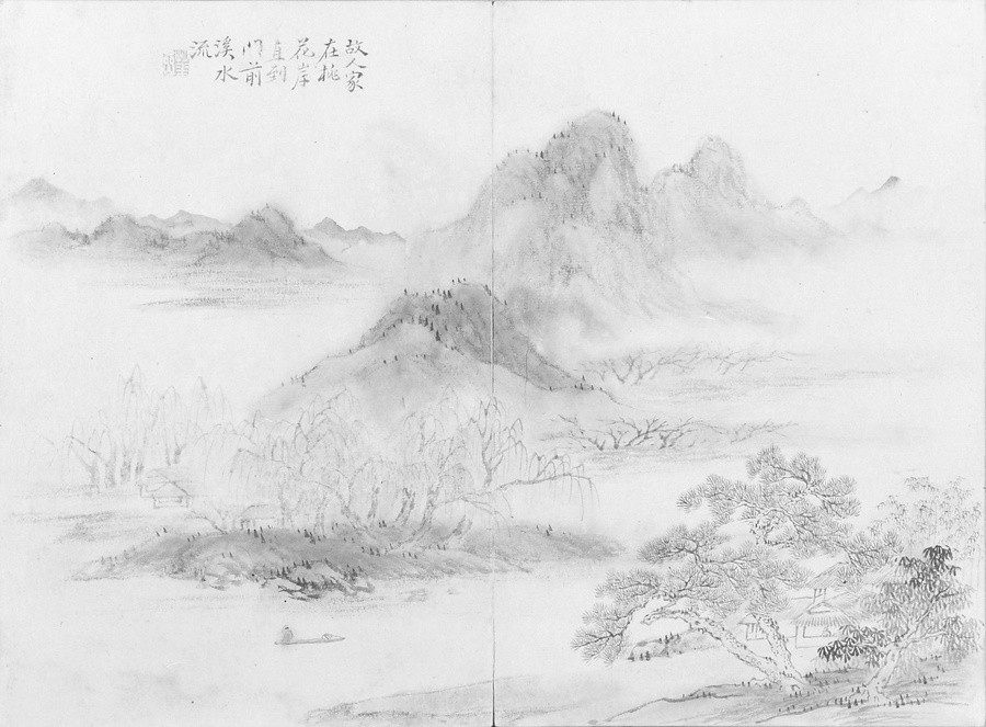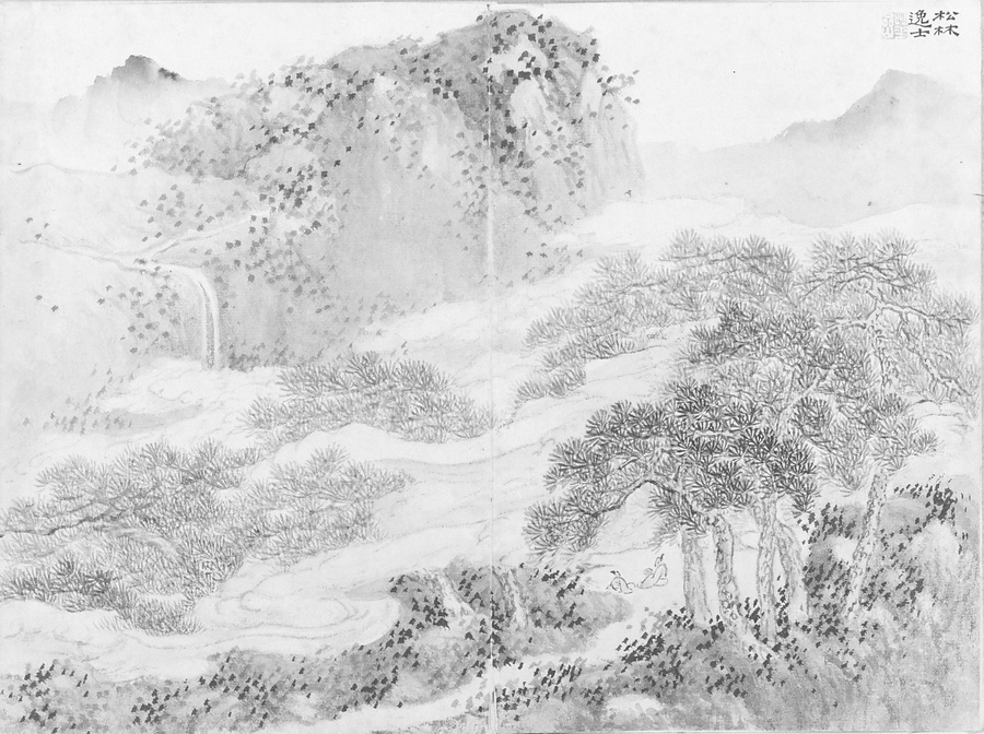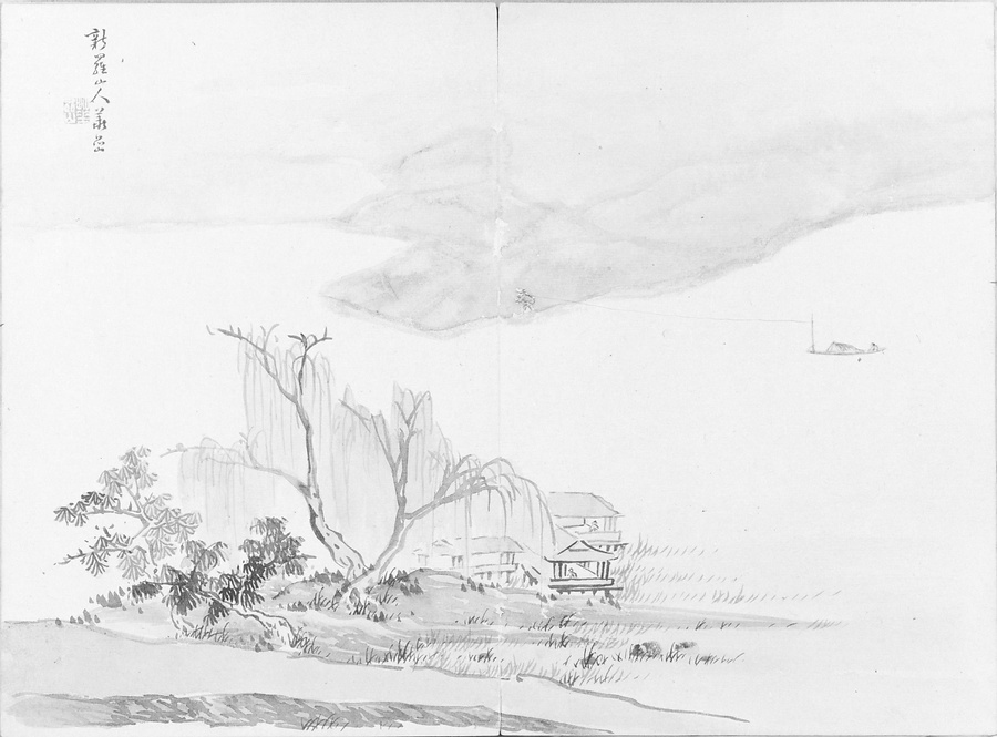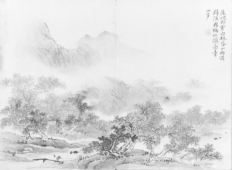 華嵒は、字を徳嵩または秋岳といい、号の新羅山人でよく知られています。福建に生まれましたが、のち、杭州に寄寓しました。この画冊は12開からなり、青緑と水墨から人物・山水を描くもので、米庵は「展開すれば倦くを忘る」と言っています。ルビ:華嵒 かがん 倦 あ