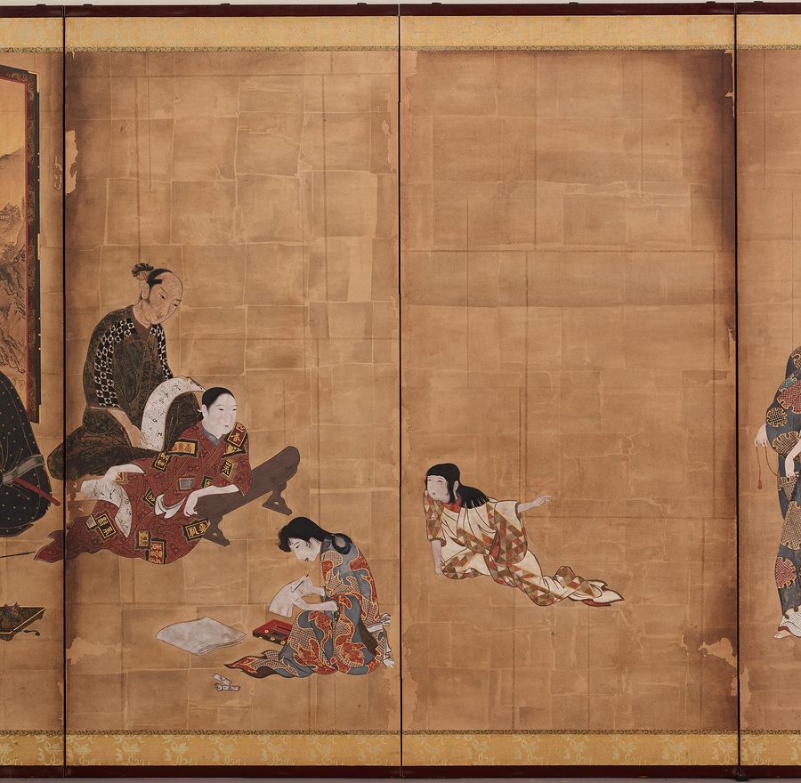 紙本金地著色南蛮人渡来図 狩野内膳筆 六曲屏風