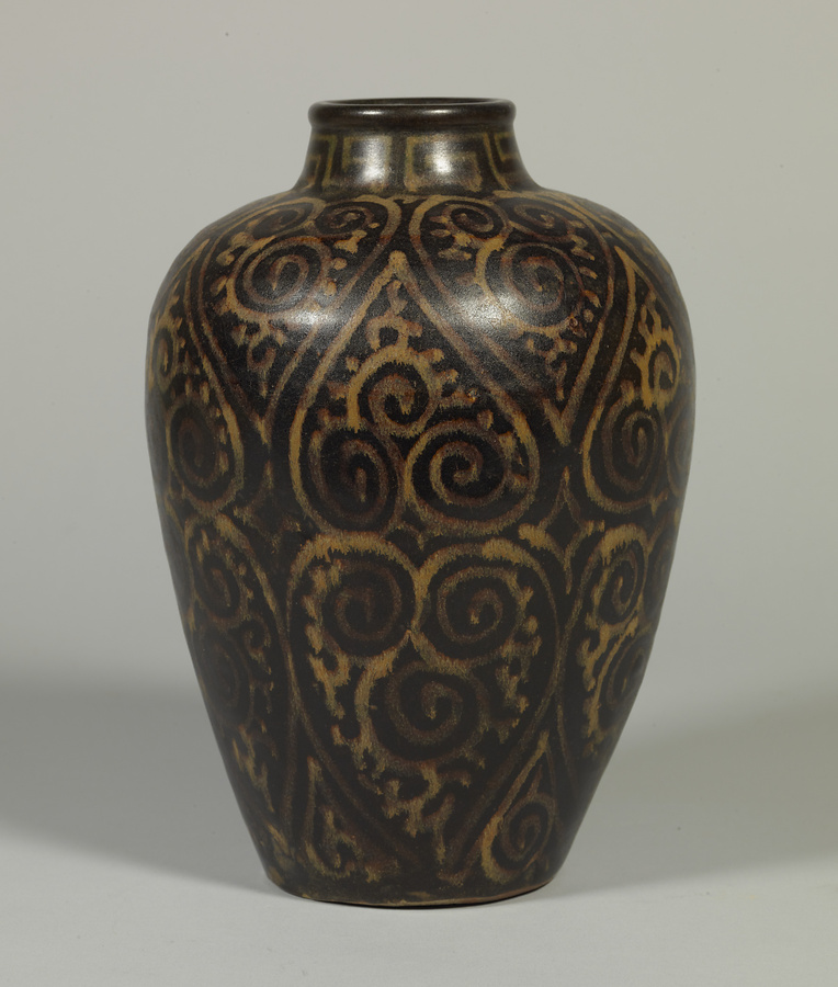 黒釉唐草文瓶