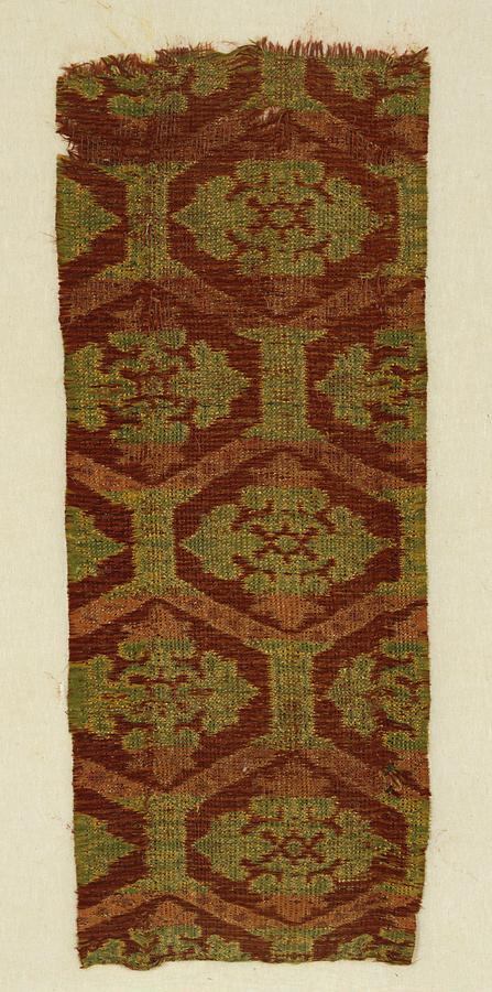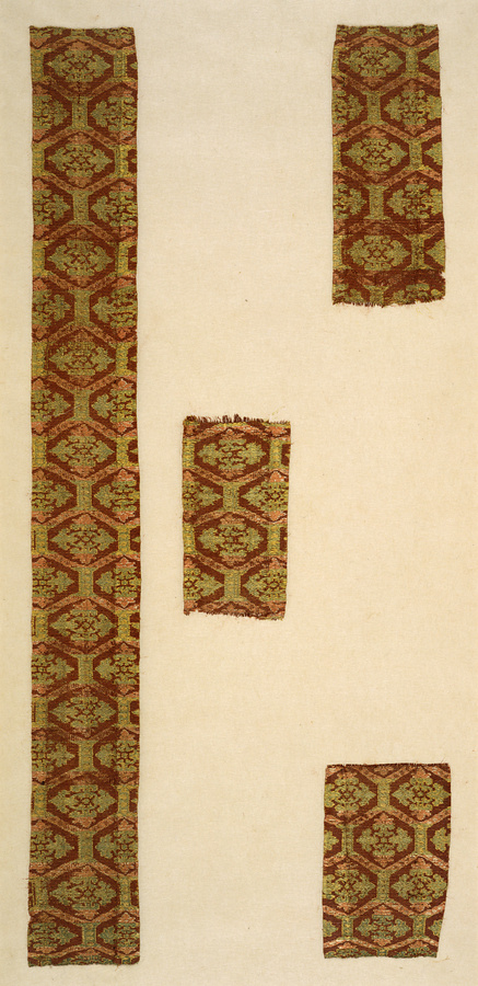 赤茶地亀甲繫花菱文錦裂
