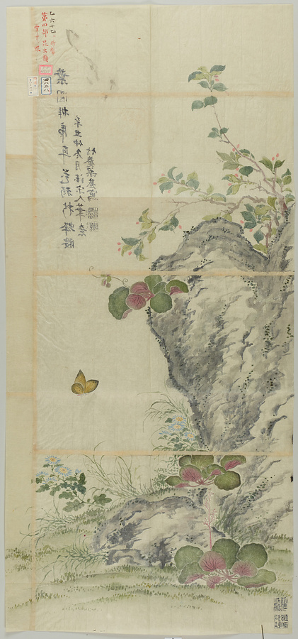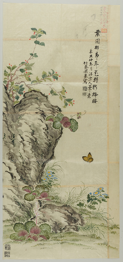 鸚鵡形毯代〈紅草花文臈纈平絹/〉