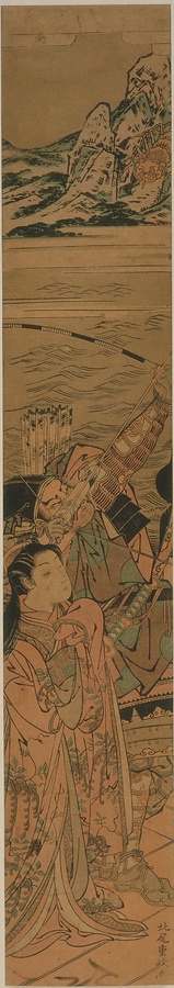 版画遊色三福つい図〈奥村政信筆/筆彩竪大々判〉