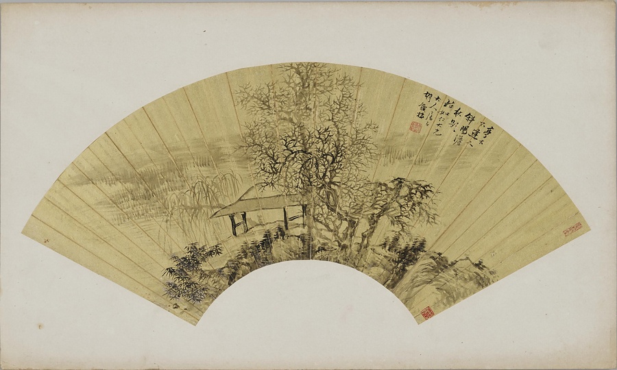 秋林幽亭図扇面