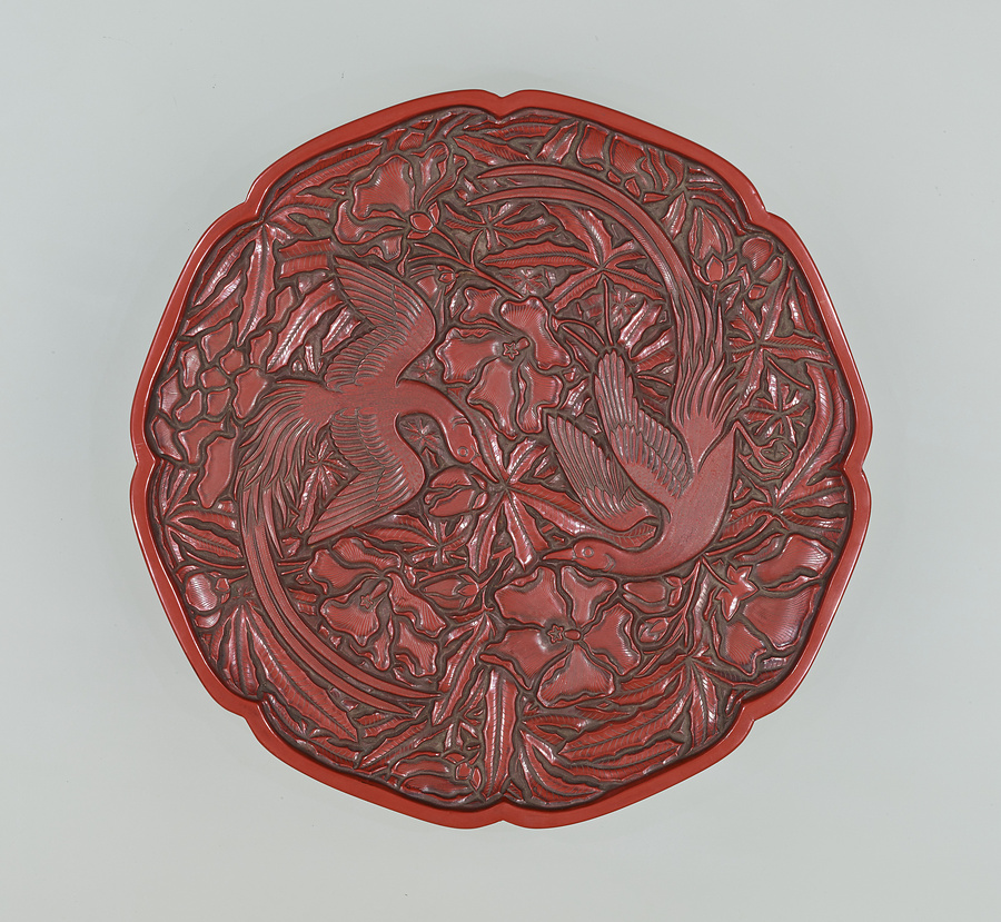 花鳥文堆朱盆 「張成造」銘