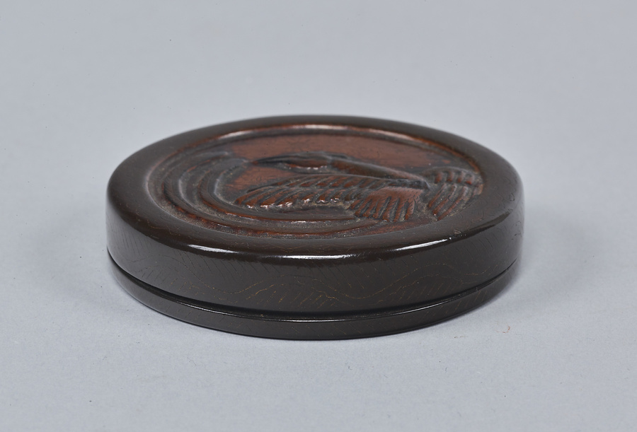 唐物 堆朱 黄染 青貝 花 存星型 香合