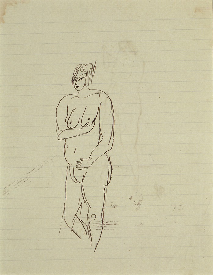 裏:両手を胸の前にした裸婦立像