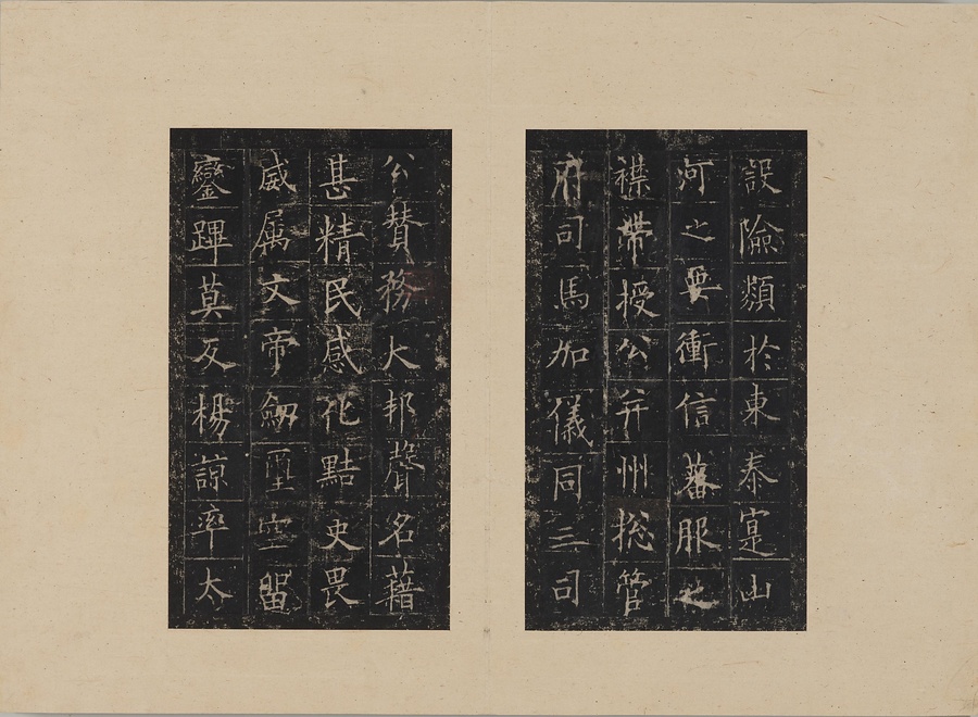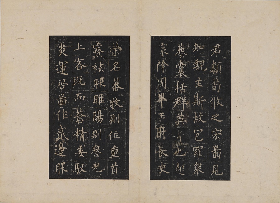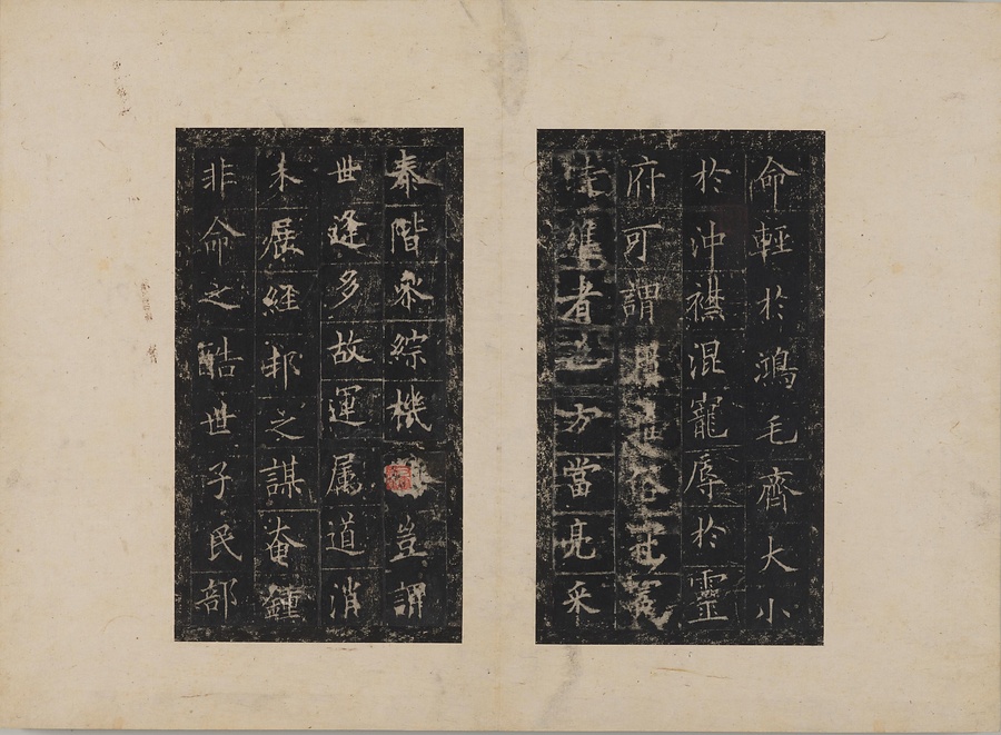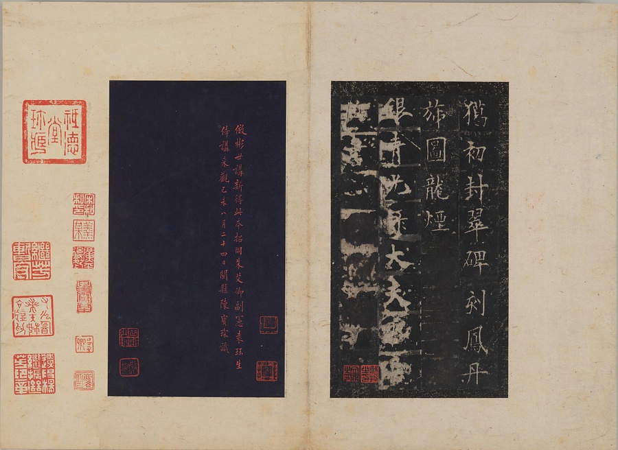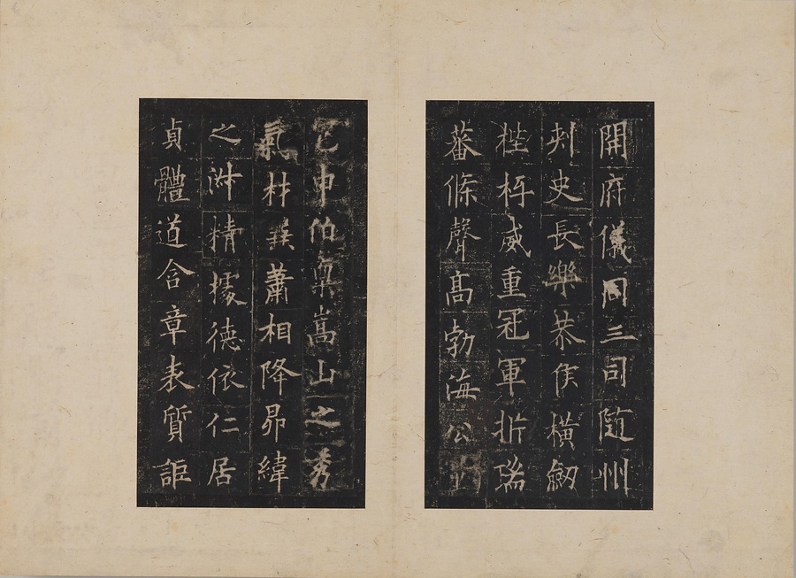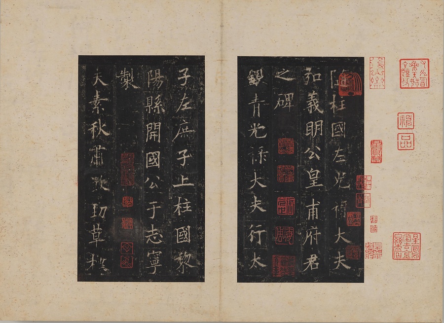 隋朝に仕えた皇甫誕@こうほたん@の頌徳@しょうとく@碑。于志寧@うしねい@の撰文、欧陽詢@おうようじゅん@の書丹。欧陽詢の楷書の中では最も峻険な趣と評されます。明の万暦@ばんれき@年間、地震により碑石が断裂し、本拓本はそれ以前の未断本として貴重です。文鼎@ぶんてい@、楊継振@ようけいしん@、張俲彬@ちょうこうひん@らが旧蔵。碑石は西安碑林博物館に現存。