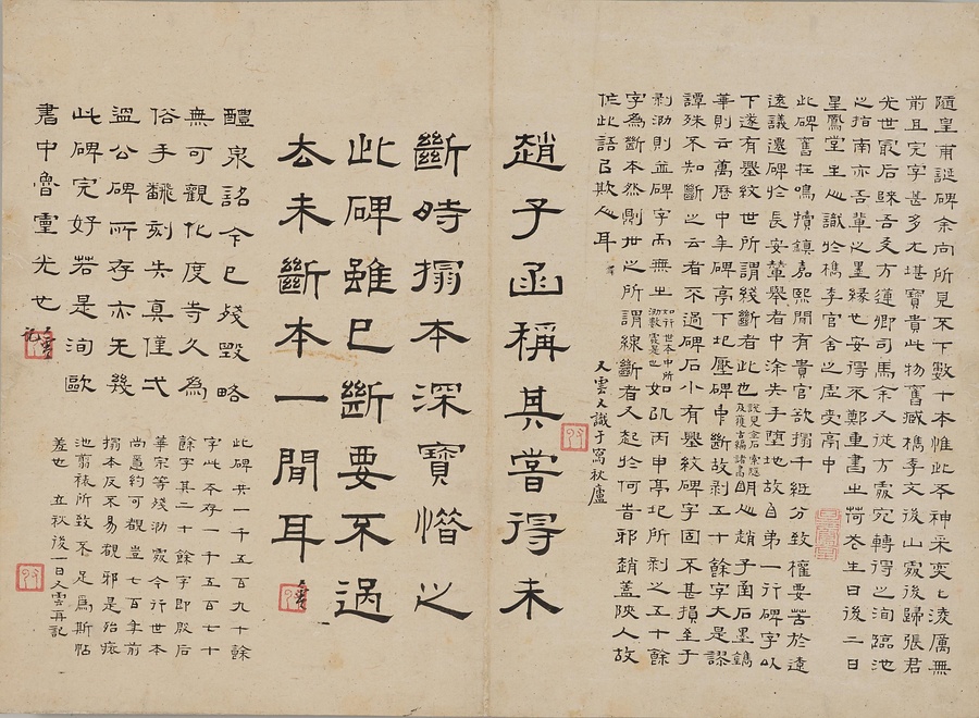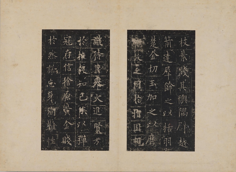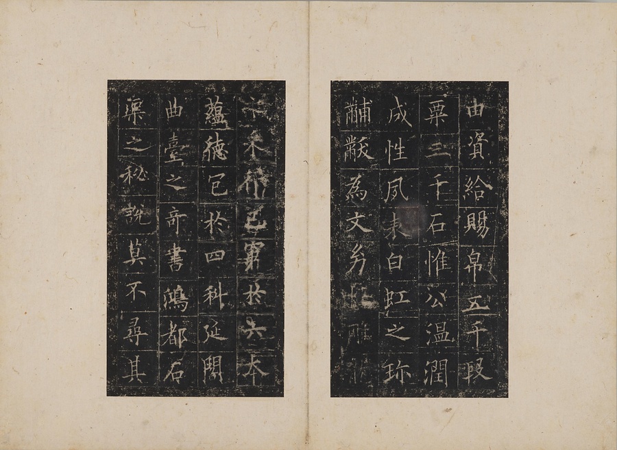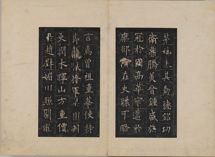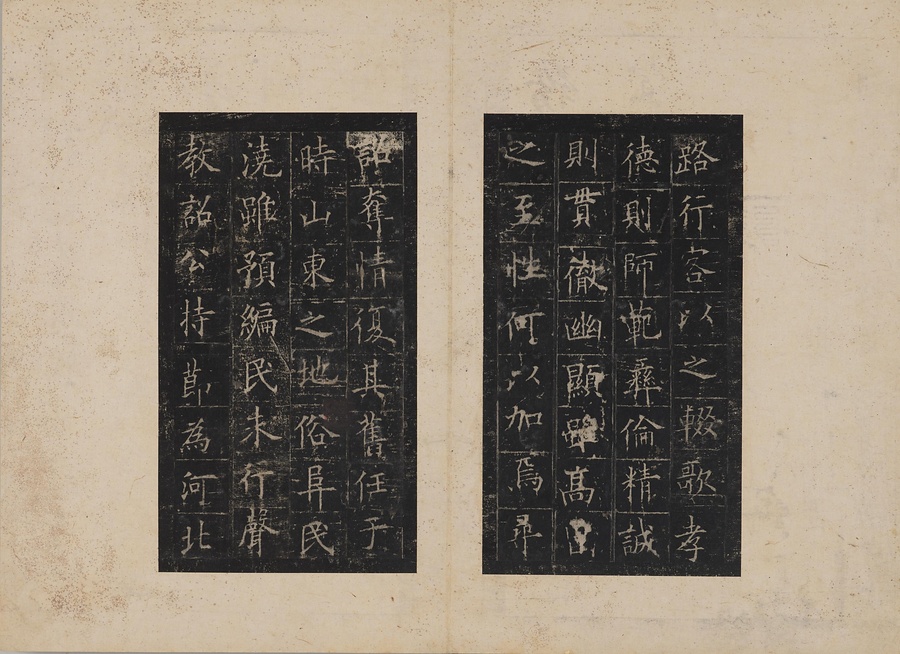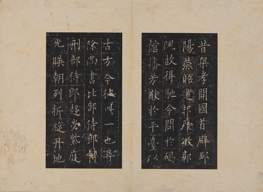 隋朝に仕えた皇甫誕@こうほたん@の頌徳@しょうとく@碑。于志寧@うしねい@の撰文、欧陽詢@おうようじゅん@の書丹。欧陽詢の楷書の中では最も峻険な趣と評されます。明の万暦@ばんれき@年間、地震により碑石が断裂し、本拓本はそれ以前の未断本として貴重です。文鼎@ぶんてい@、楊継振@ようけいしん@、張俲彬@ちょうこうひん@らが旧蔵。碑石は西安碑林博物館に現存。