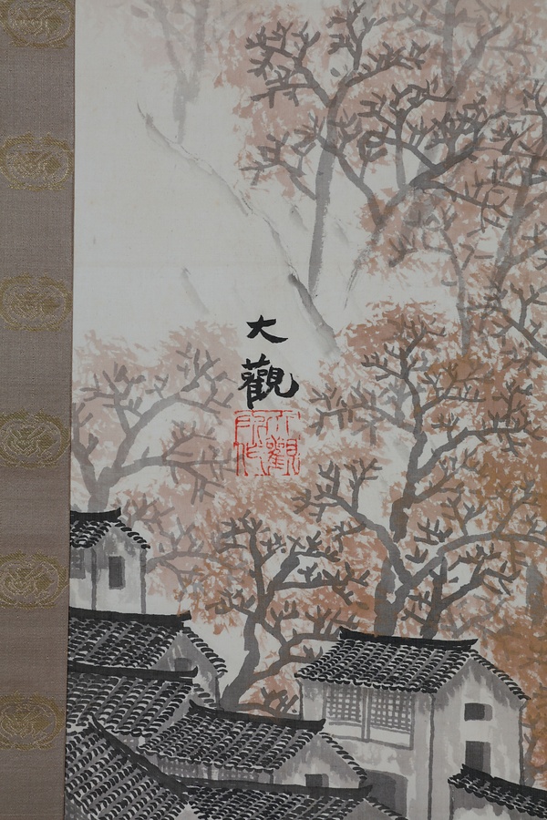 1911(明治44)年7月に細川護立が3幅対の同名絹本作品を購入しており、同一作品と推測されている(細川護熙編『美に生きた細川護立の眼』求龍堂 平成22年 32-33頁)。