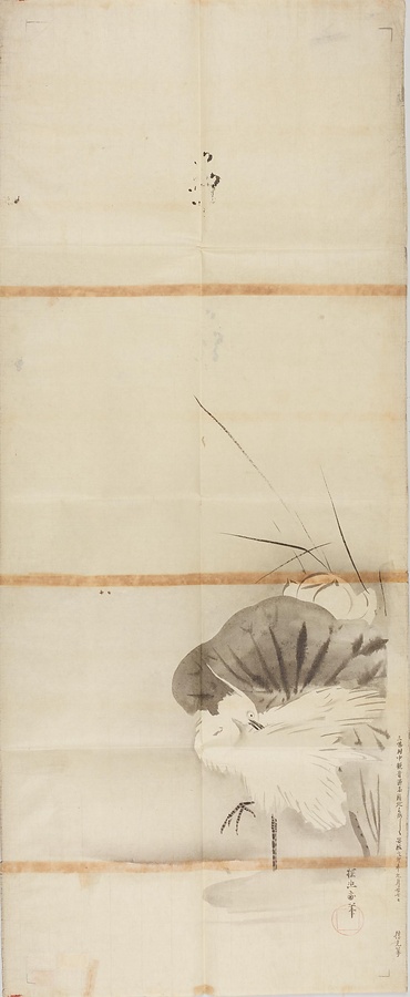 探幽/蓮ニ鷺月ニ鴝鵒図