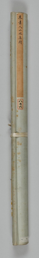 朱本【しゅほん】は字を素人、号を漑夫、竹西などといい、江蘇省揚州の人。のち、北京に寓しました。本図は北宋の画家・燕文貴に倣い、広い河川に悠然と舟が行き交う、のどかな春の田園風景を描きます。柳の新芽の緑と、満開の桃の花のピンク色が美しい対比を見せています。(植松氏執筆)(180626_t081)