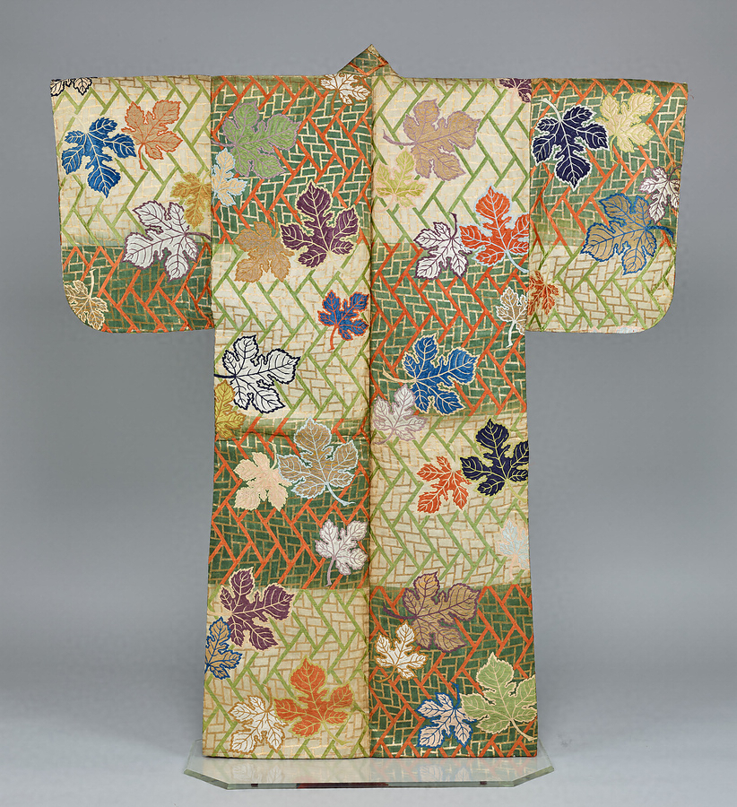厚板唐織 緑白段檜垣梶葉模様