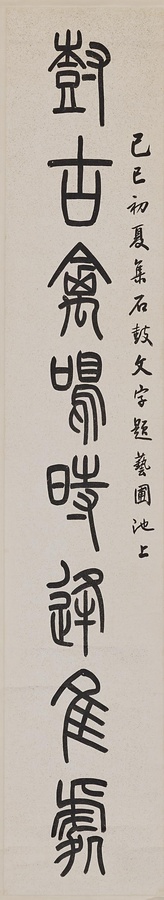 銘文:上款「己巳初夏集石鼓文字題藝圃池上」 ; 下款「清卿呉大澂」 ; 鈐印「呉大澂印」 ; 戉辰翰林