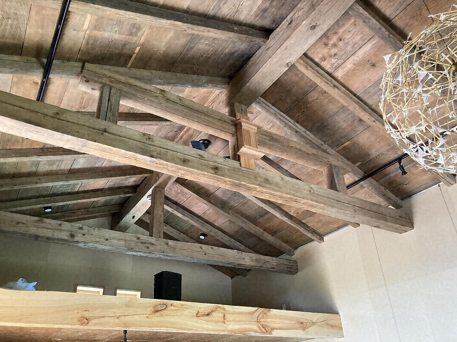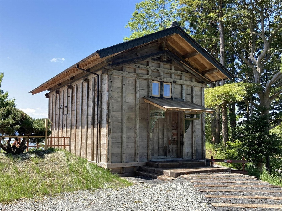 北上川河口の丘陵頂部に移築したかつての米倉。平屋建切妻造妻入の東西棟で置屋根形式のスレート葺とし東妻を戸口として庇を付す。内部は1室の板敷で上部は二段に梁を重ねた和小屋を現す。側柱を密に立てた当地域特有の板蔵で小規模ながらも存在感を示す。