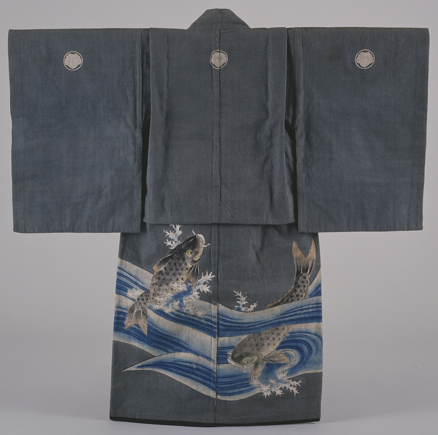紺地岩波鯉文様繍箔