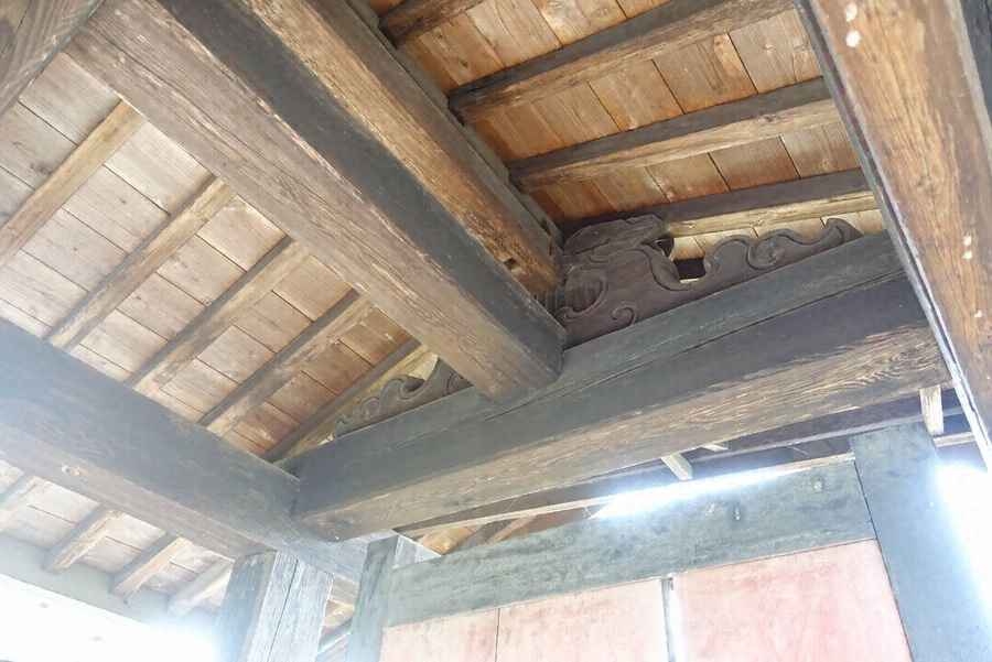 主屋の東側に建つ中門は、桁行1間梁間1間切妻造鉄板葺の門で、南に袖塀を付す。本柱は五平、控柱は角柱とし、梁上に配した蟇股で棟木を支え、軒は一軒疎垂木とし、門口に両開板戸を吊る。主屋正面に建ち、簡素ながらも御師住宅の風格ある構えをつくる門。