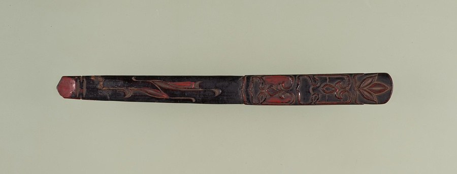 アイヌの人びとの宗教儀礼上欠くことのできない祭具です。神(カムイ)に酒を捧げるときに用いるもので、イクパスイ(酒箆+さけべら+)はアイヌ(ひと)の祈りや願い事を正しく神に伝えてくれる役目をはたすと信じられています。裏面に所有印を施しています。