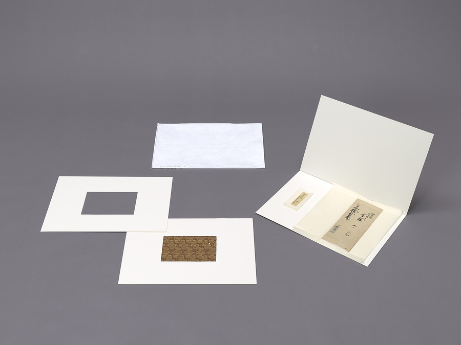 武将茶人の富田左近将監知信 ?~一五九九)が所持したと伝えられる金襴。茶の湯の世界で賞玩された貴重な舶来織物を名物裂と呼ぶ。これはそのうち、このように雲が左上へと連なっていく文様を富田金襴、右上へ伸びる文様を嵯峨金襴と呼んでいる。