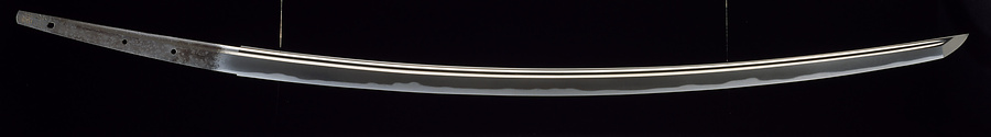 この太刀は、身幅が腰元へ向かって広く、腰で強く反って、先を小鋒(こっきさき)とする形姿が時代の特色をよく伝えている。地鉄(じがね)鍛えは杢目(もくめ)の交じるよくつんだ板目肌で、小乱れの刃文中には、足・葉(よう)と呼ぶ線状の縦縞が見