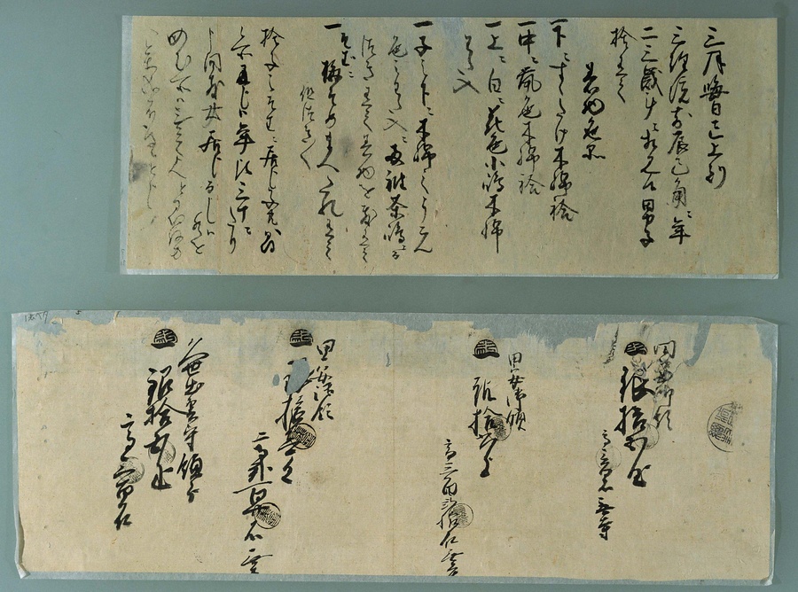 記録によってこの作品は、平安時代の延久元年(1069年)の2月から5月にかけて、秦致貞(はたのちてい)という絵師が描いたものと分かっています。唐草文様を織り出した絹に絵が描かれており、同様の絹織物は平安時代の貴族の衣装にも用いられていました。