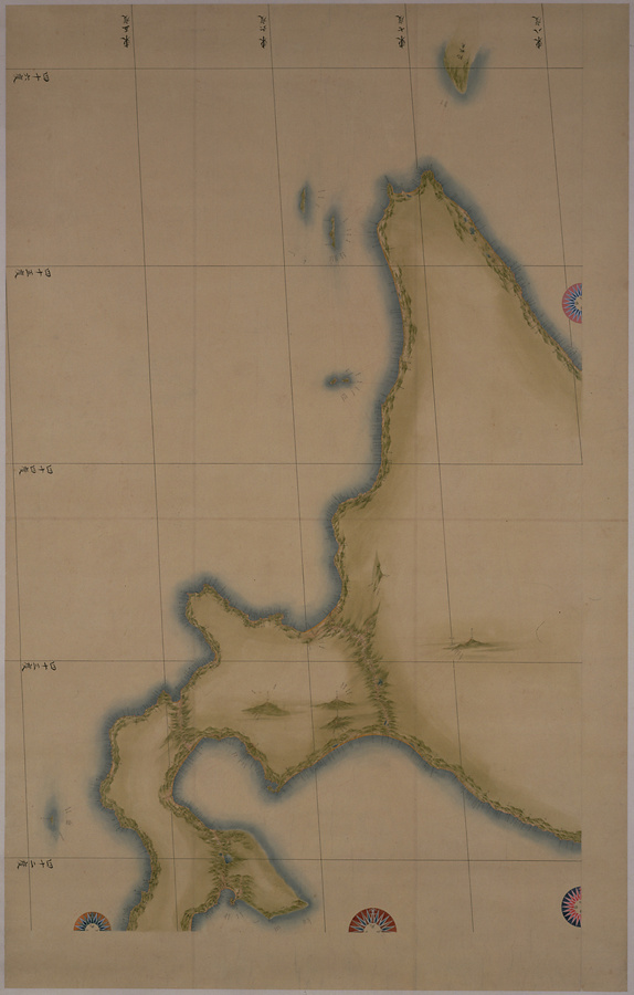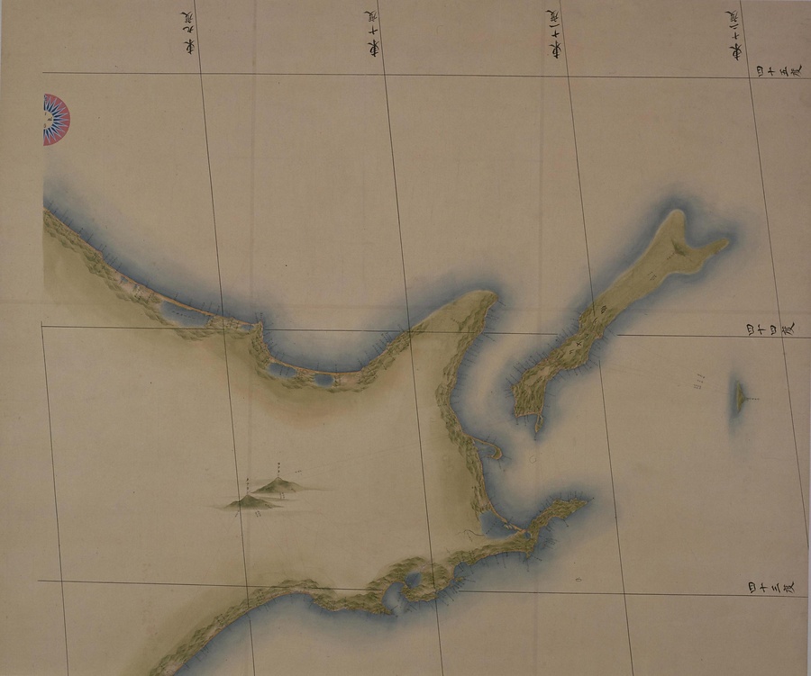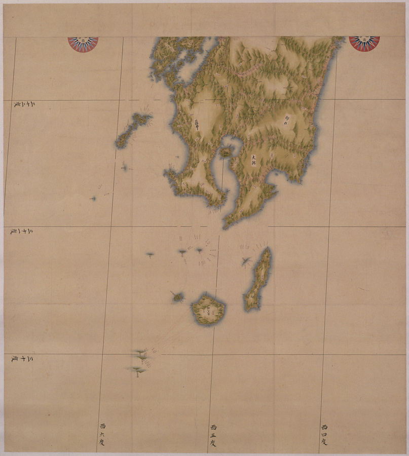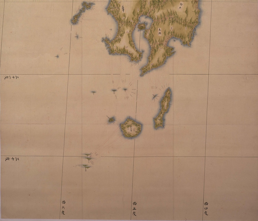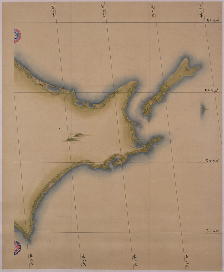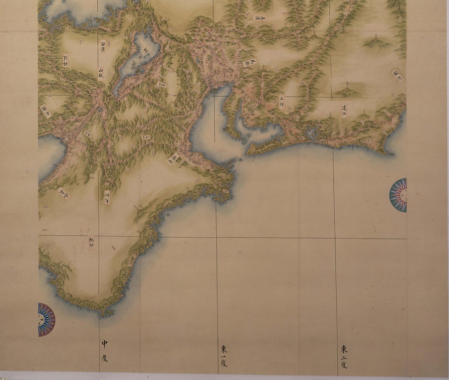 伊能忠敬制作の日本図のうち中図に分類される。縮尺21万6千分の1で、日本列島を8図で表わす。忠敬が測量を行った時期の老中を出した三河吉田藩主松平(大河内)家に伝来し、数ある伊能図の中でも最も美麗なものの一つである。(140624_伊能忠敬の日本図)