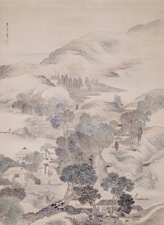 松村月渓(1752~1811)は、天明元年(1781)の三月、最愛の妻を事故で亡くし、この年の秋、思い出多い京都を離れて、摂津池田に居を移した。そして、その翌年、姓を呉、名を春と改めて心機一転をはかる。本図はそれからほどなくの制作と思われる。