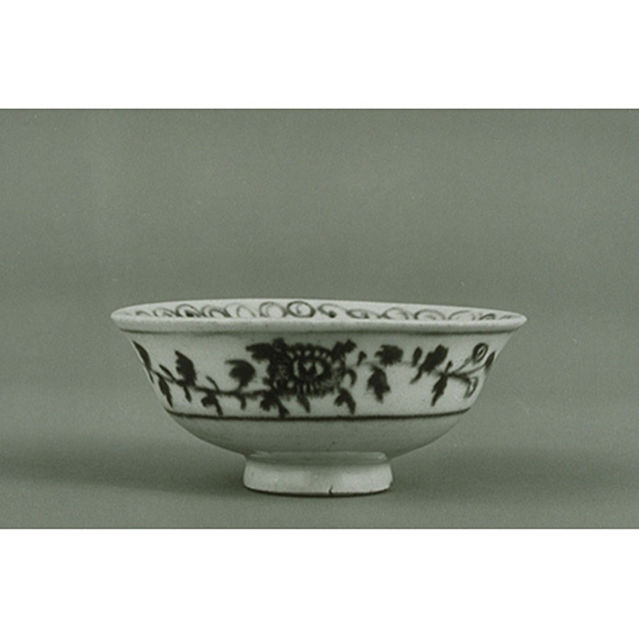 白地黒花牡丹文碗 磁州窯