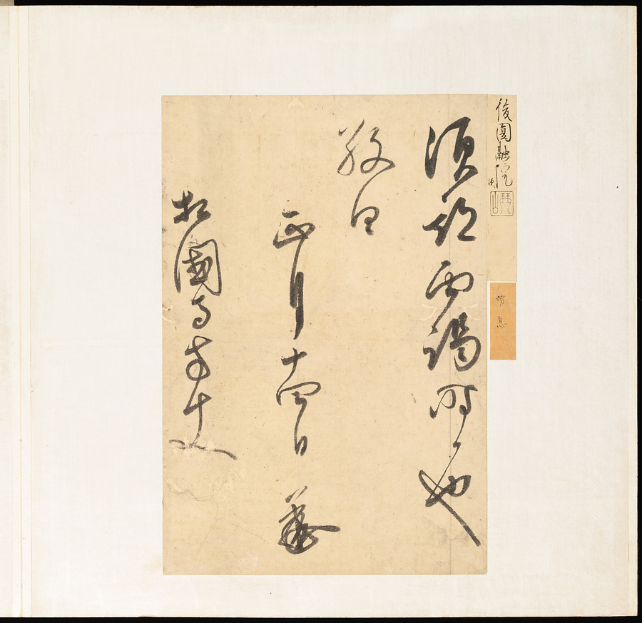 銘文:(墨書)「妙法院宮尭恕親王外題/毫戦帖」 ; (墨書)「毫戦」