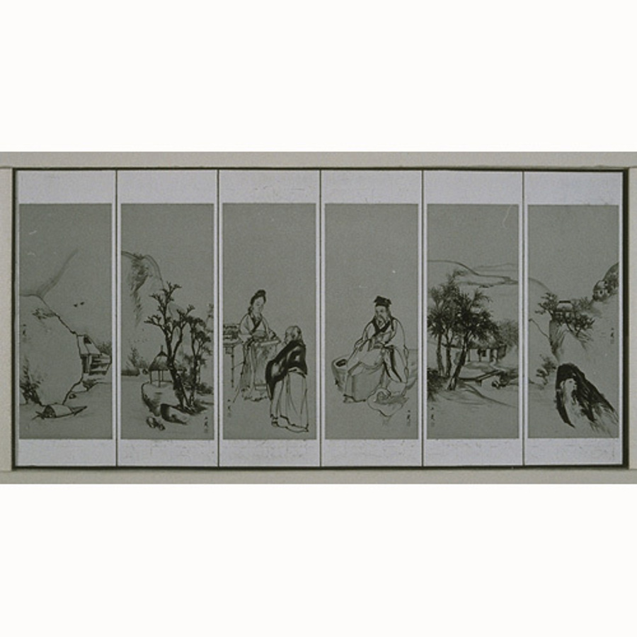 花鳥草木人物図押絵貼交屏風