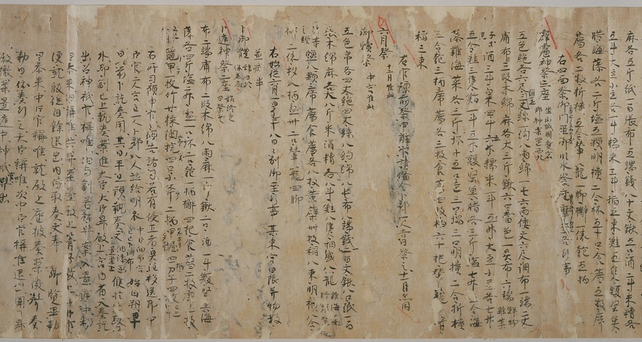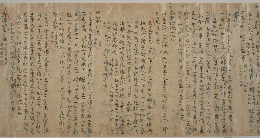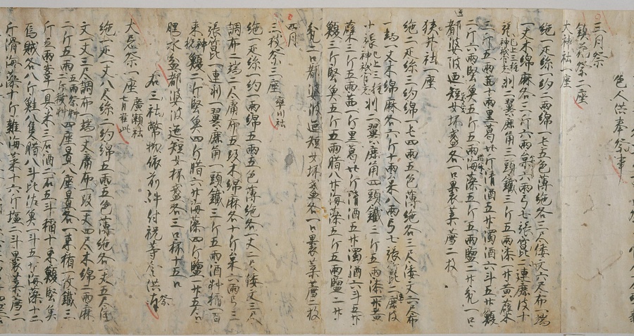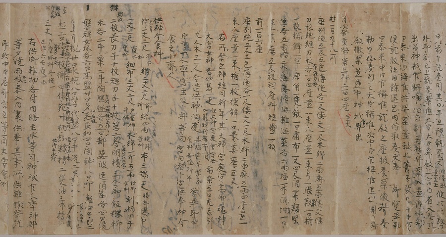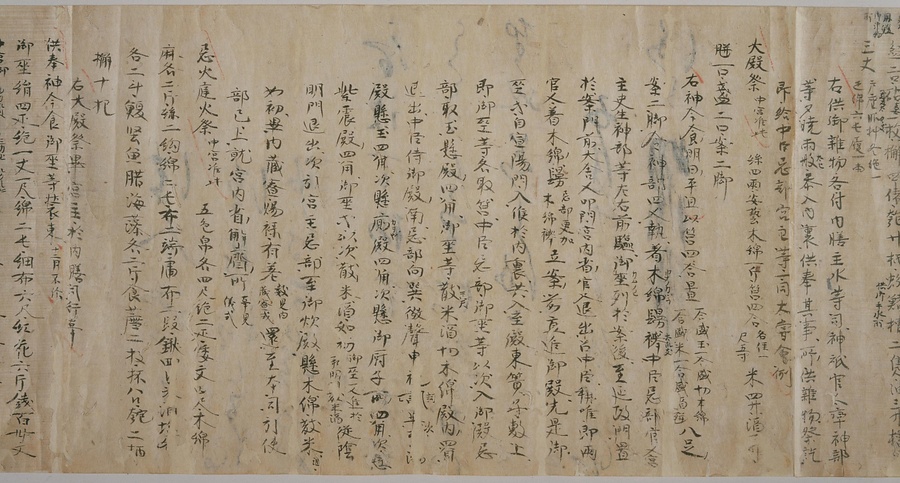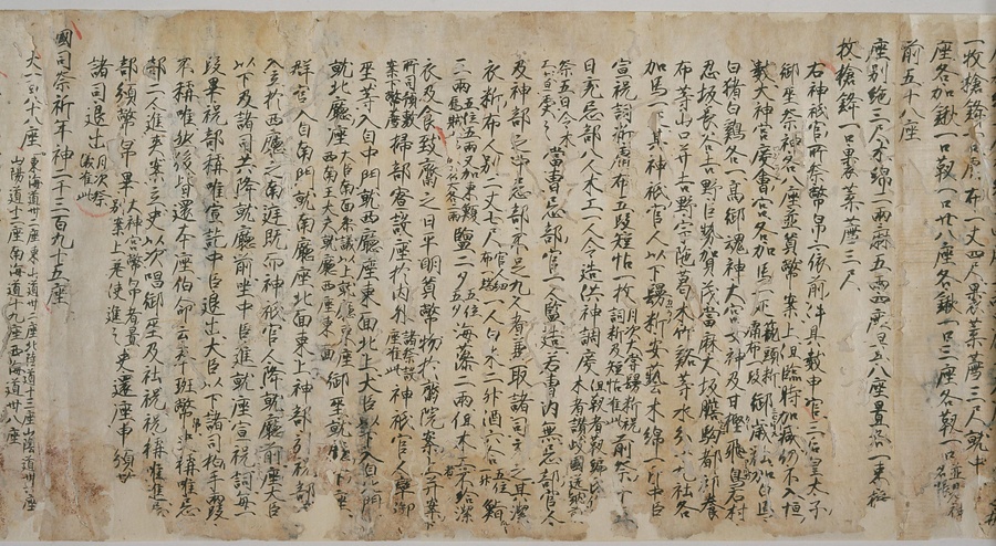 今回ご紹介する延喜式は、オリジナルを書き写した文章で、写本と呼ばれるものです。この写本は現存する中で最も古く、奈良・平安時代を通じて権力を握っていた藤原氏の一族である九条家に伝わりました。延喜式は全50巻で構成されていますが、そのうちの27巻が残っており、1巻を除くすべてが平安時代の後期に書き写されたものです。