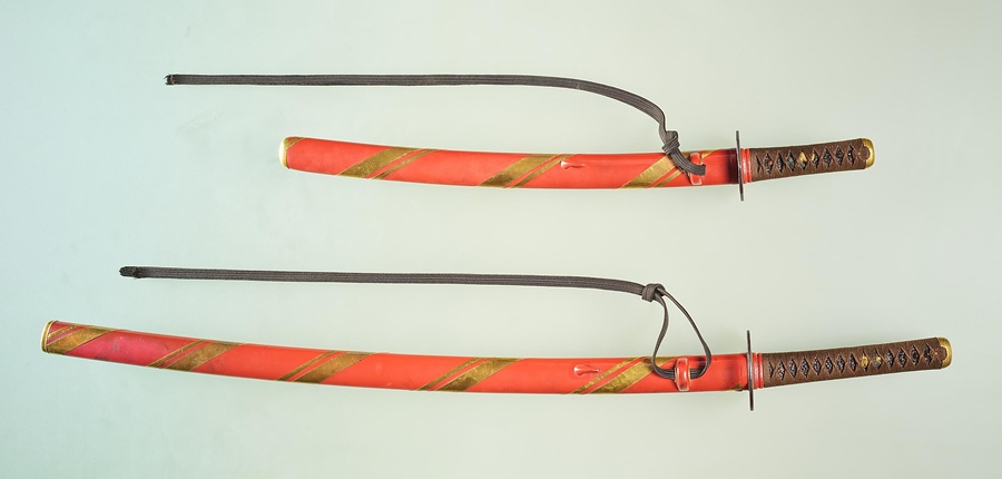 朱漆金蛭巻大小