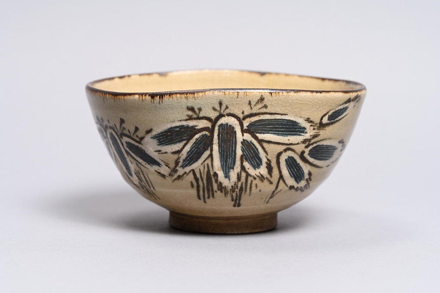 銹絵月に雁文茶碗