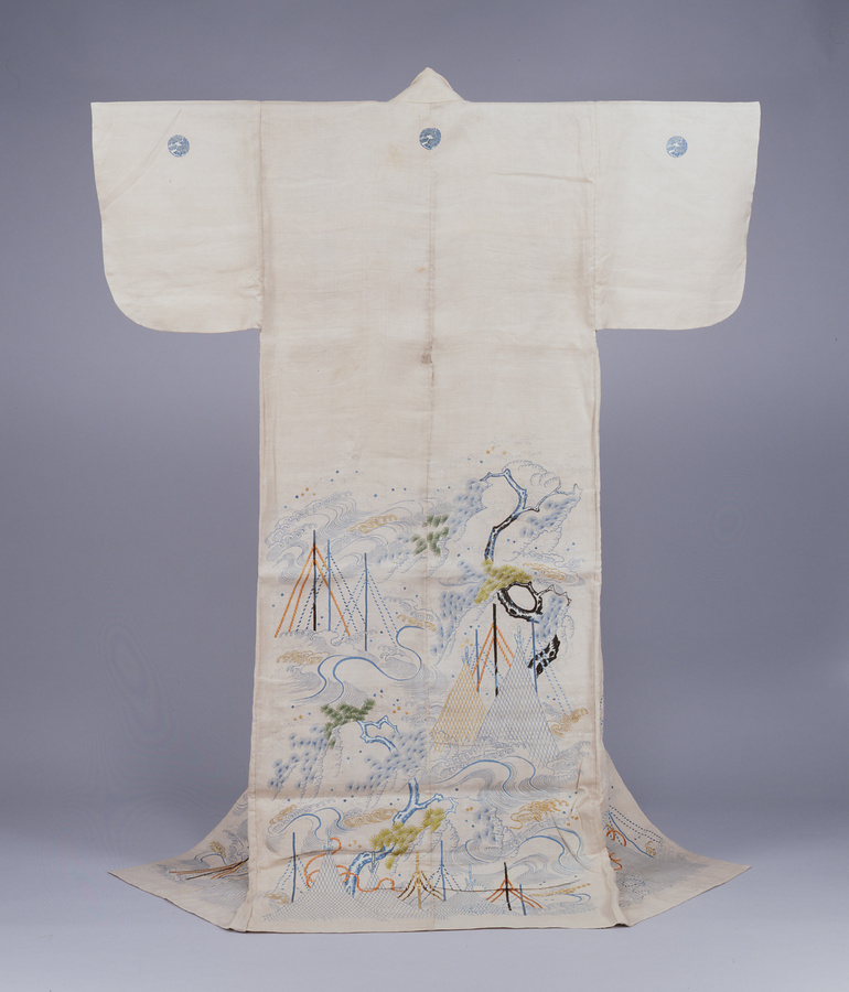 帷子 淡紅麻地網干流水松模様(牡丹丸紋付)