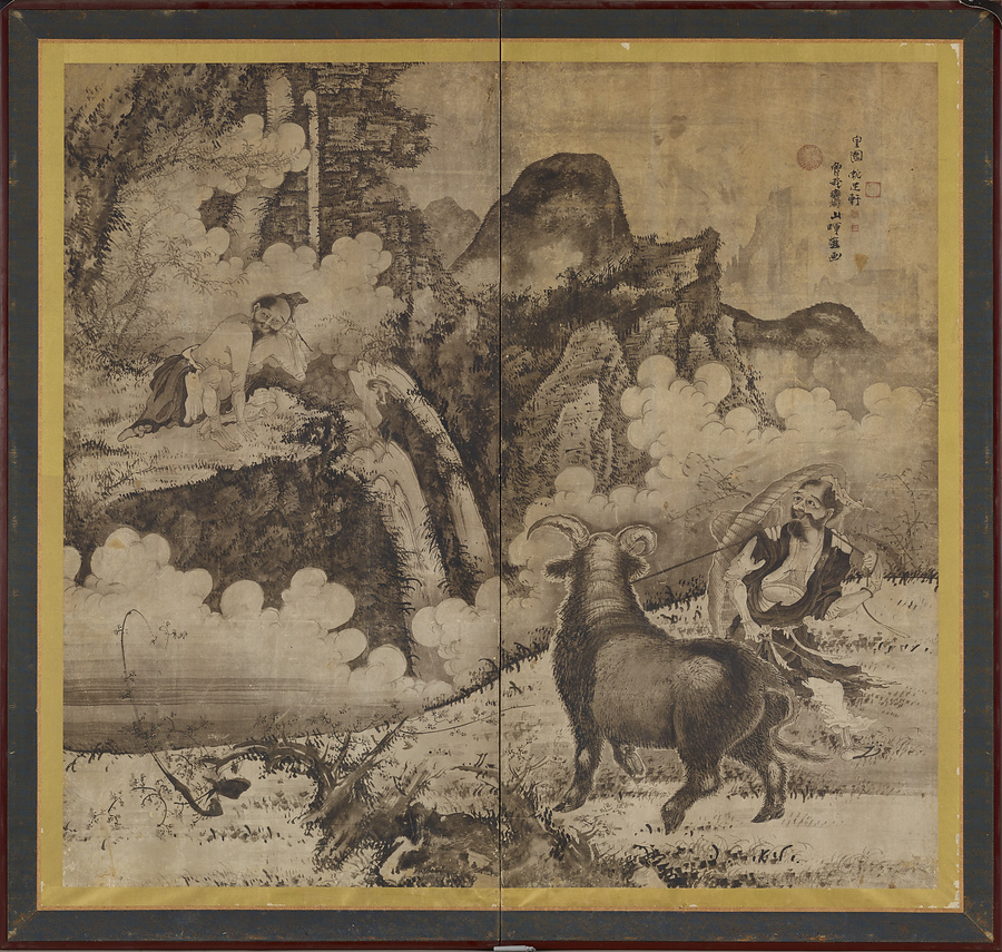 許由巣父図屏風
