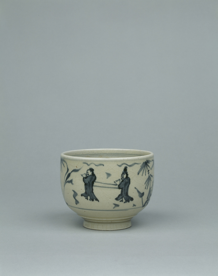 安南染付写竹人物文茶碗