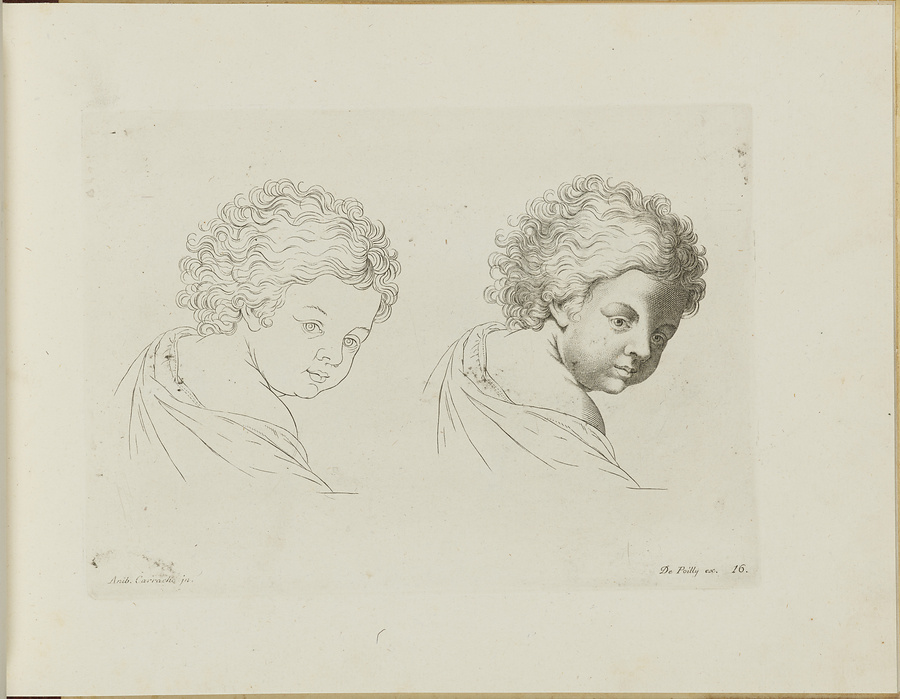 本書は、イタリアの初期バロック美術を代表する画家、アンニバーレ・カラッチの人物ドローイングをもとにした肖像画教本である。