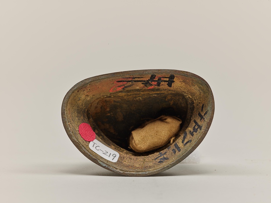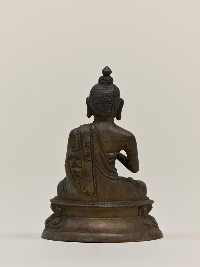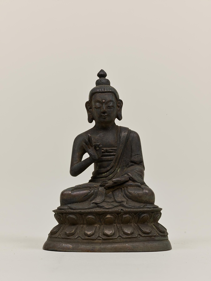 右手の第1・2指を曲げ、左手を膝上に置くため、左手上に鉢を乗せていたなら釈迦如来、水瓶を乗せていたなら弥勒如来である可能性があります。