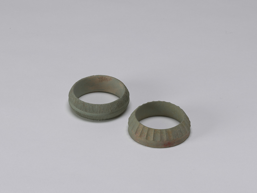石製合子には濃緑色の碧玉と淡緑色の軟質石材を用いたものとがある。前期古墳からいくつか見つかっているが例は多くない。