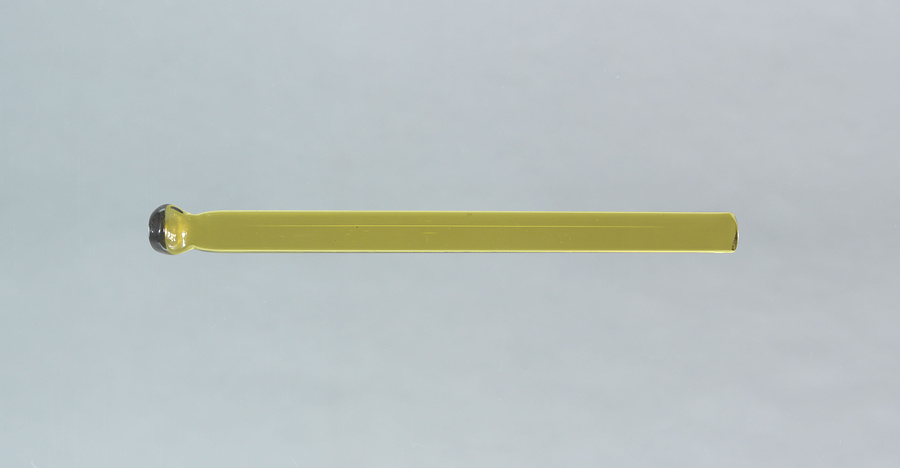 白鼈甲の色に似せた黄色ガラスの中差である。花柳章太郎(1894~1965)の旧蔵品で平成15年(2003)に遺族の青山久仁子氏より国立劇場へ寄贈された。