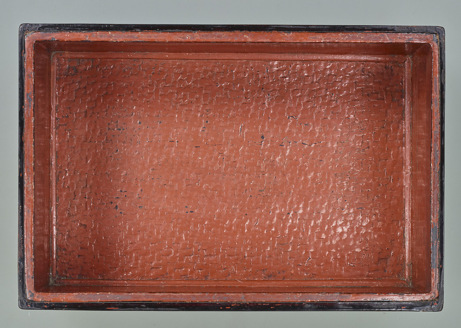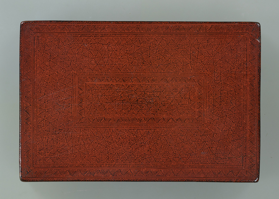 蒟醤とは、タイやミャンマーで製作される漆器の一種。黒漆を塗った地に文様を彫りあらわし、そこに朱漆を充填している。異国情緒に富んだ文様が生み出す独特の表情が日本でも人気を集めた。「金馬」とも書く。茶入は近代数寄者、松永安左エ門(耳庵)旧蔵品。(TH295とTH403共用)(三笠氏執筆)