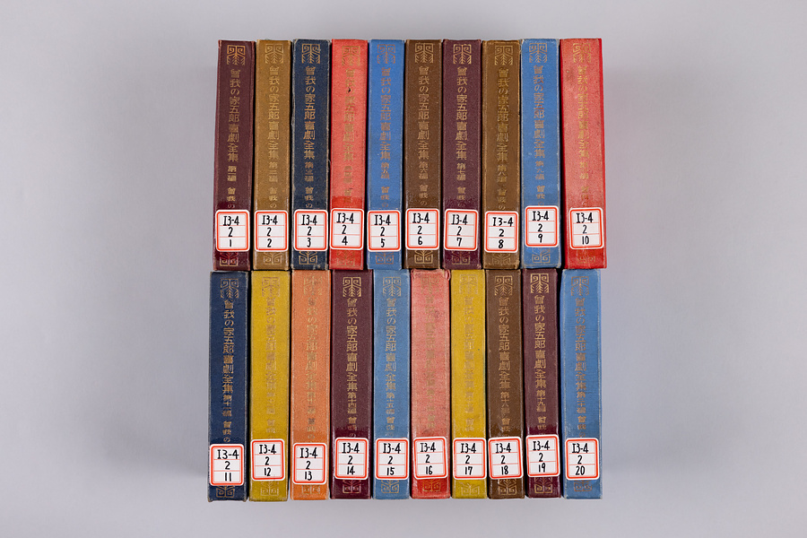 五郎が一般読者のために刊行した2種類の戯曲全集の一つ。全20編。大鐙閣より大正11年(1922)〜12年(1923)にかけて出版された。大正9年(1920)から『マルクス全集』を刊行し、他にも『日本文化史』全12巻などの学術書の刊行元として知られていた大鐙閣から、五郎がなぜ全集を出すことになったのかは定かではない。博文館や大日本雄弁会講談社といった大衆向けの書籍を多く出していた出版社を選ばなかったのは、喜劇の創始者としての自らの権威と正統性を欲していた五郎らしい。そもそも商業演劇の作品が活字になることはまれで、たとえば松竹新喜劇に数々の名作を提供した舘直志(二代渋谷天外の筆名)は戯曲集を公刊していない。舞台人の間では、「上演台本」は舞台で俳優が演じてはじめて生命がやどるもので、「戯曲」として自立しているものではない、という考えが根強くあるからだろう。けれども五郎は、自分の作品を「文学」つまり読むものとして世に問うことにした。活字として残すことが歴史に残ることだ、という確信があったのだ。