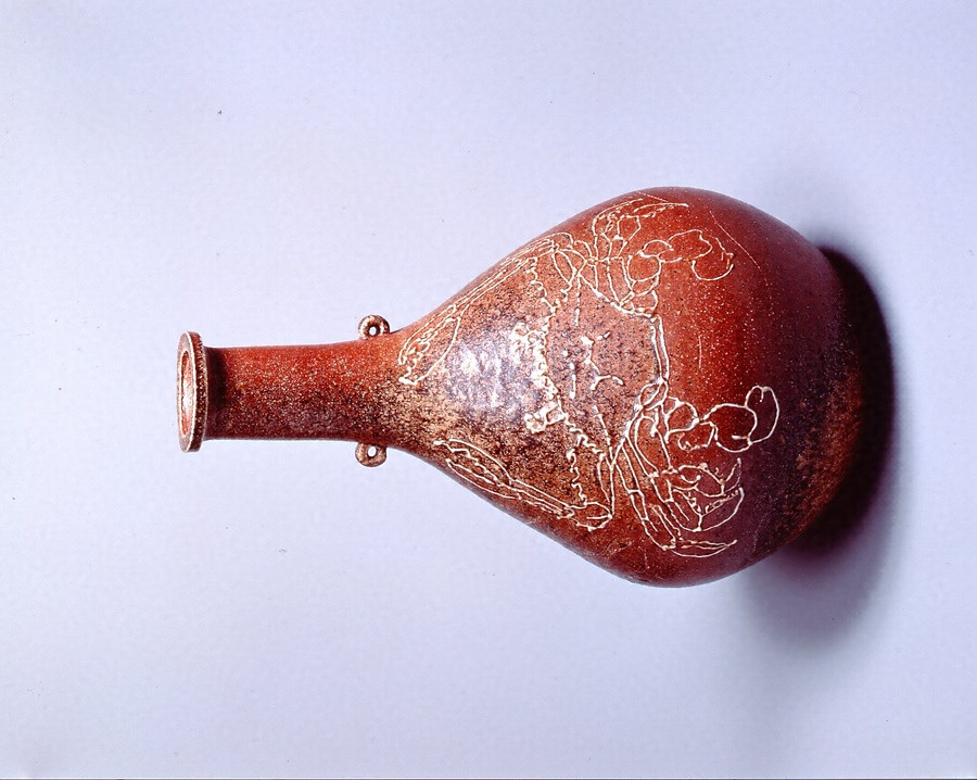 焼〆灰被イッチン渡り蟹花瓶