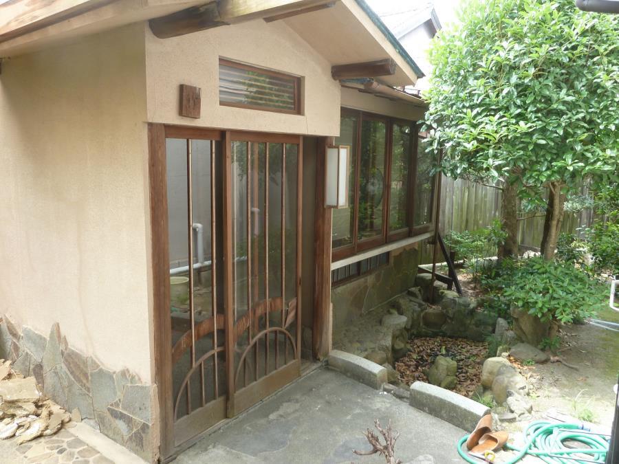 本館背面に離れて建つ小座敷。座敷二室を設けて各玄関を構え、接続部に共通の水回りを設ける。玄関や下屋に青瓦、壁に乱形石やタイルを用い、内部は大壁とし、新興数寄屋風の意匠で仕上げる。本館とともに伝統木造の料理旅館の姿をよく伝えている。