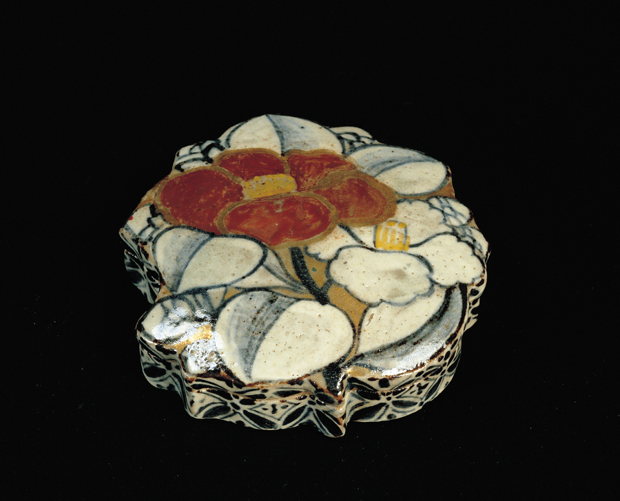 色絵椿図香合