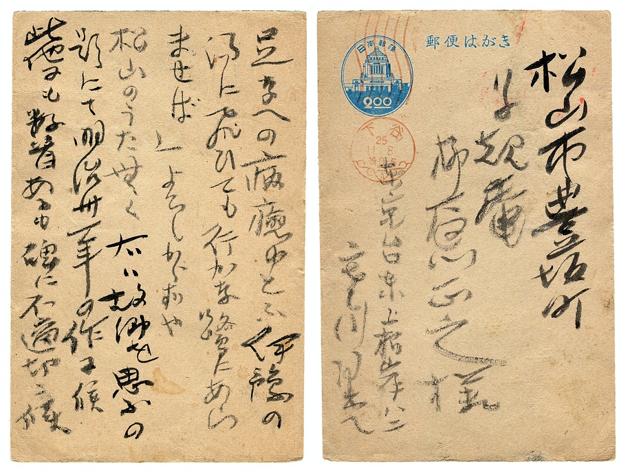 さむかわあきみつ(そこつ)はがき やなぎはらまさゆき(きょくどう)あて