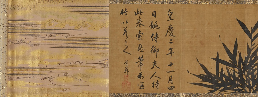 管道昇(かんどうしょう)は元時代の女性画家。元時代を代表する文人・趙孟頫(ちょうもうふ)(1254~1322)の、よく夫を助けた理想の妻として知られ、画は墨竹をよくしたと伝えられます。狩野常信(つねのぶ)(養朴、1636~1713)、および5代後にあたる惟信(これのぶ)(養川院、1753~1808)による極があります。