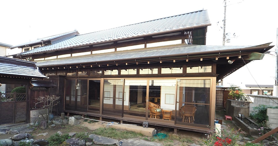 市中心部を貫く道路沿いに位置する、廻船問屋や呉服屋を営んだ商家の主屋。平屋建切妻造桟瓦葺南北棟で東面南寄りに玄関を配し、南端を二階建、北東の庭に面して座敷を配す。二階座敷は軸部など透漆塗とし、竿縁天井は中央と周囲で意匠を変えた凝ったつくり。