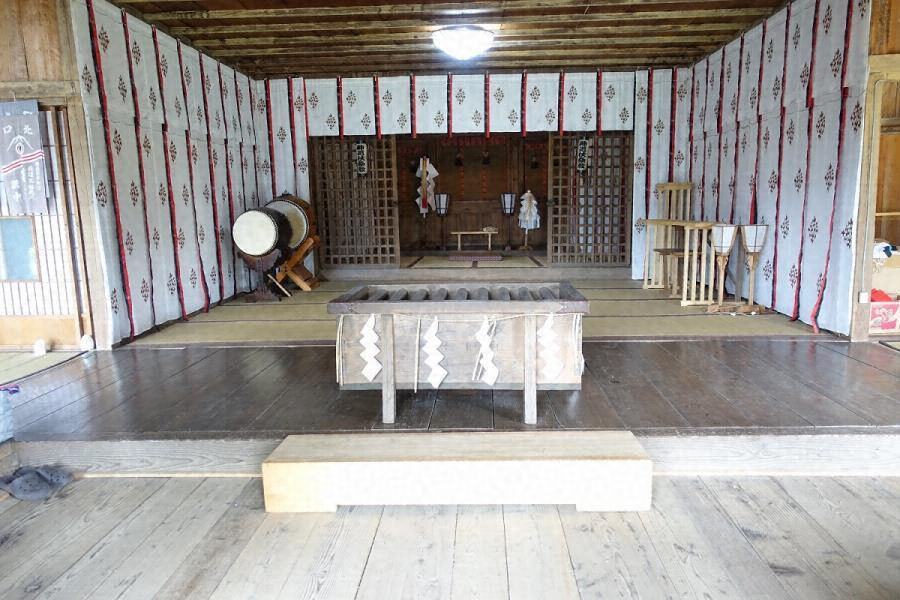 北口本宮冨士浅間神社に隣設。北面し、切妻造金属板葺の正面に唐破風向拝、東西に下屋、南に神殿を付す。正面に縁を通し内部北列は踏込床を囲んで板敷、南列は畳敷三室とし中央奥に正面三間の神殿を配す。土足で祈祷を受ける富士講の形態を残す神殿兼拝所。